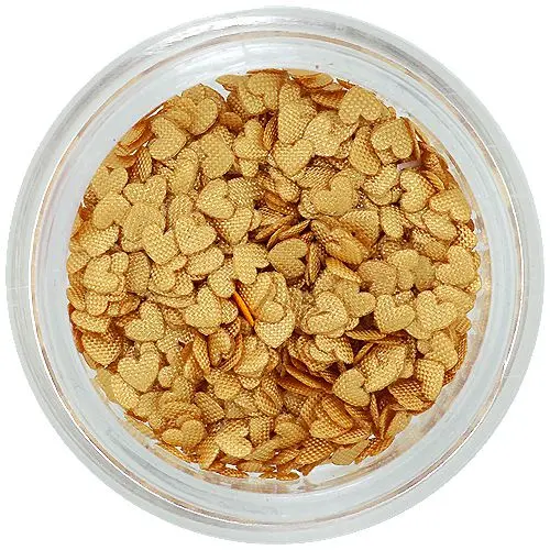 Originální nehtové ozdoby ve tvaru látkových srdíček tmavší béžové barvy s okrovým nádechem, v matném provedení s mřížkovým potiskem látky ve stejném barevném provedení. Díky látkovým srdíčkům získáte originální a jedinečný vzhled vašich nehtů. Vhodné na zdobení všech typů nehtů.